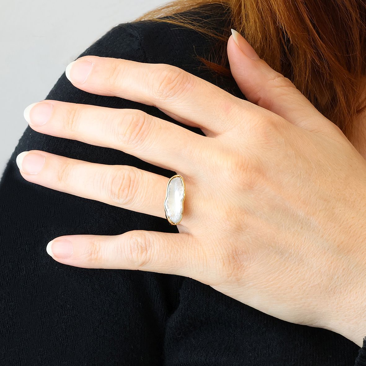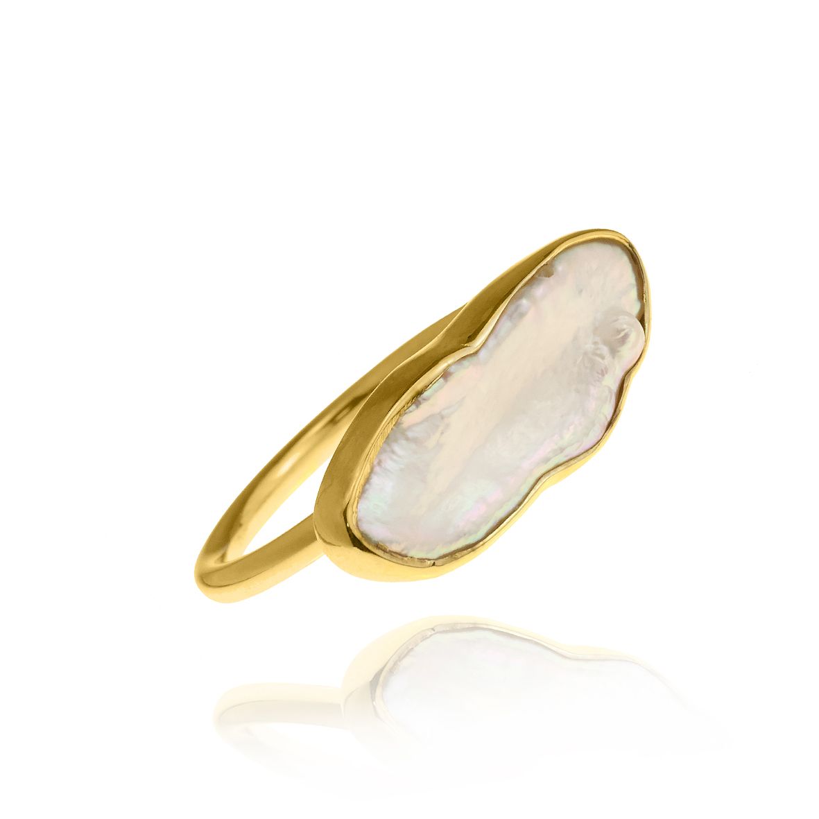 Ring silver 925 yellow gold plated with fresh water pearl